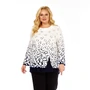 Фотомодель на фотографиях ростом 172 сантиметра, с обхватом груди – 102, талии – 85, бедер – 113 см. Размер – 52 (как и размер рубашки на фото).