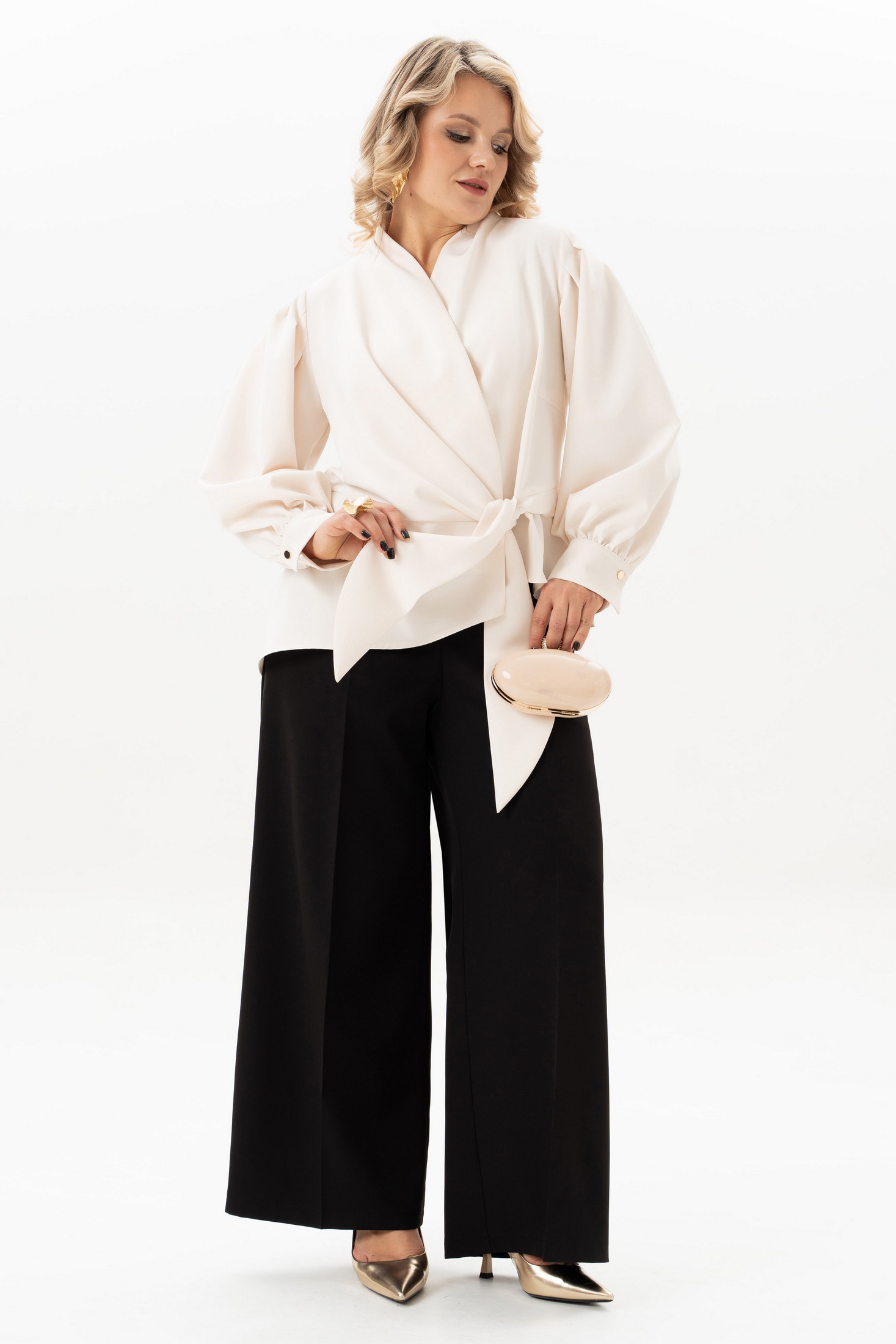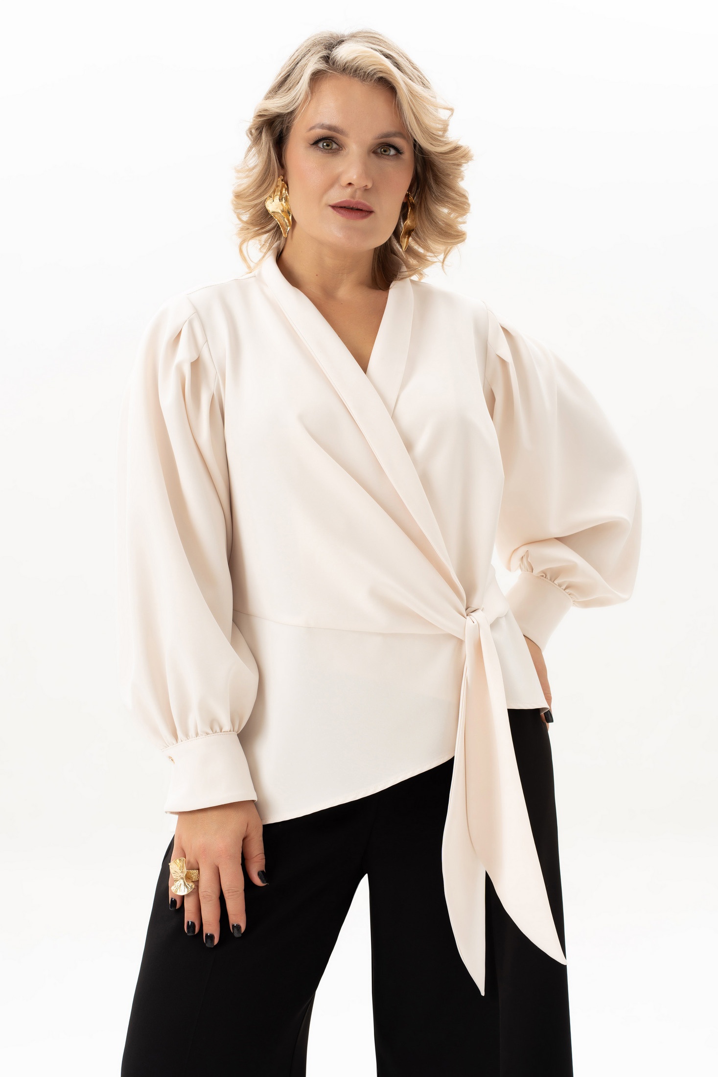 Оригинальная женственная блуза на запах с вырезом станет незаменимой вещью в Вашем гардеробе. Всесезонная блуза с длинными рукавами на манжетах легко впишется в Ваш повседневный, вечерний, а также деловой офисный стиль. Роскошная блузка сочетает в себе легкость и комфорт. Блуза с отрезной баской и воротником стойкой переходящей в борта. Застежка на потайную петлю и пуговицу и на завязки. Рукав длинный, втачной на манжете. По окату рукава обработаны складки. Вы сможете носить эту блузу не только летом, но и осенью, зимой и весной. Стильная женская блуза класса люкс соответствует модным тенденциям 2025-26 года. Ткань отлично тянется и обеспечивает идеальную посадку по фигуре. Мы уверены, что высокое качество Вас не разочарует! Широкий размерный ряд, включающий большие размеры, позволит Вам подобрать подходящий размер. Праздничная блузка скроет несовершенства фигуры, выгодно подчеркивая ваши красоту, женственность и индивидуальность. Элегантная и красивая блуза станет идеальным вариантом как для торжественных мероприятий: выпускной, корпоратив, свадьба, любой другой праздник, Новый год, так и для деловых и повседневных встреч, офиса. Нарядная модная блузка отлично подойдет для фотосессии, похода в театр и свидания. Сезоны, когда вы сможете ее носить: осень, зима, весна. Длина рукава (см):62. Длина блузы (см):67