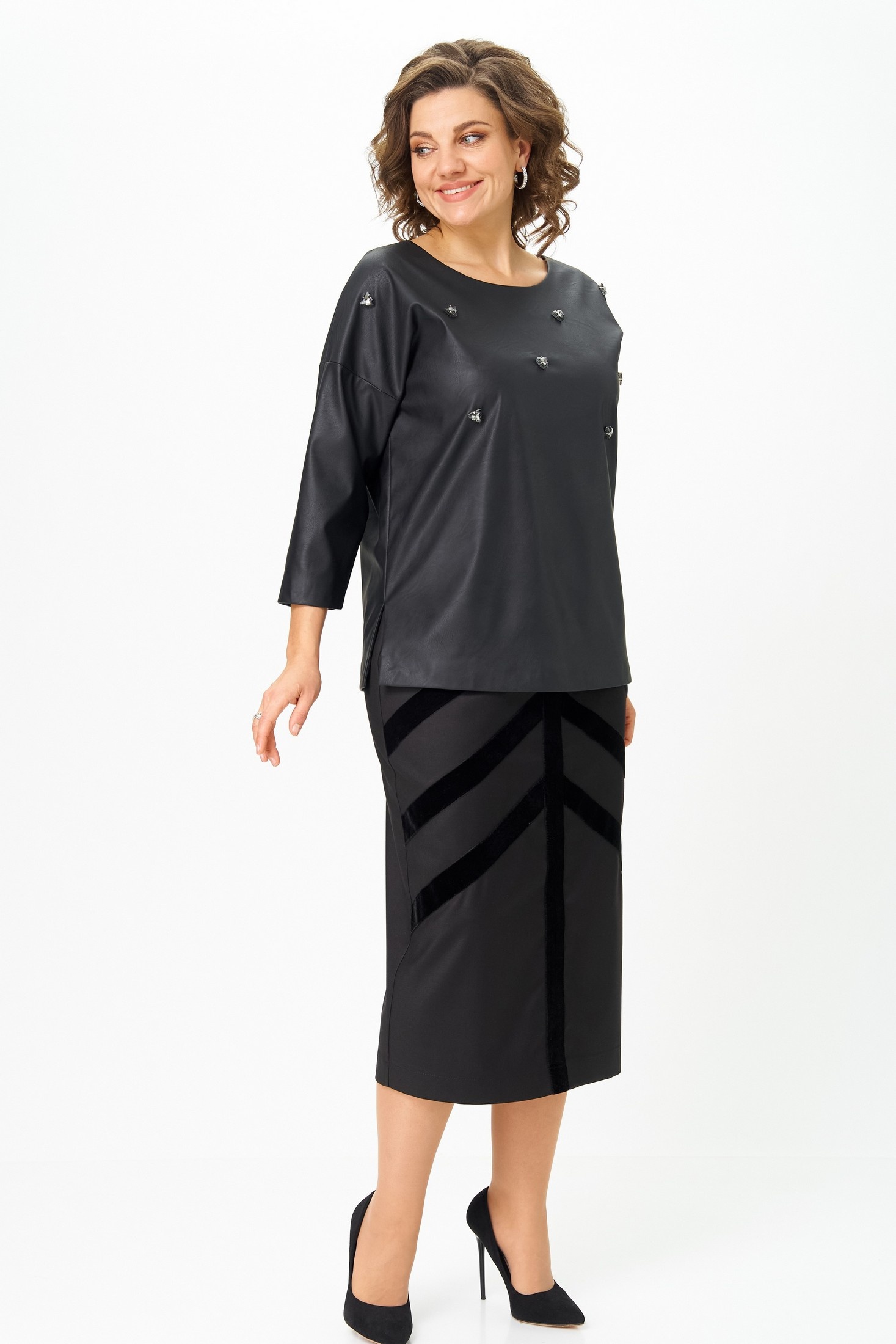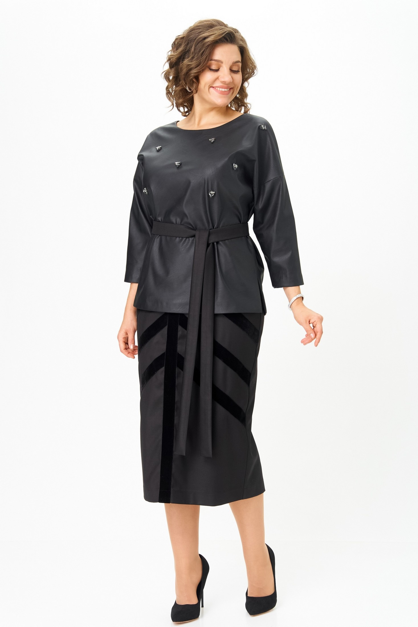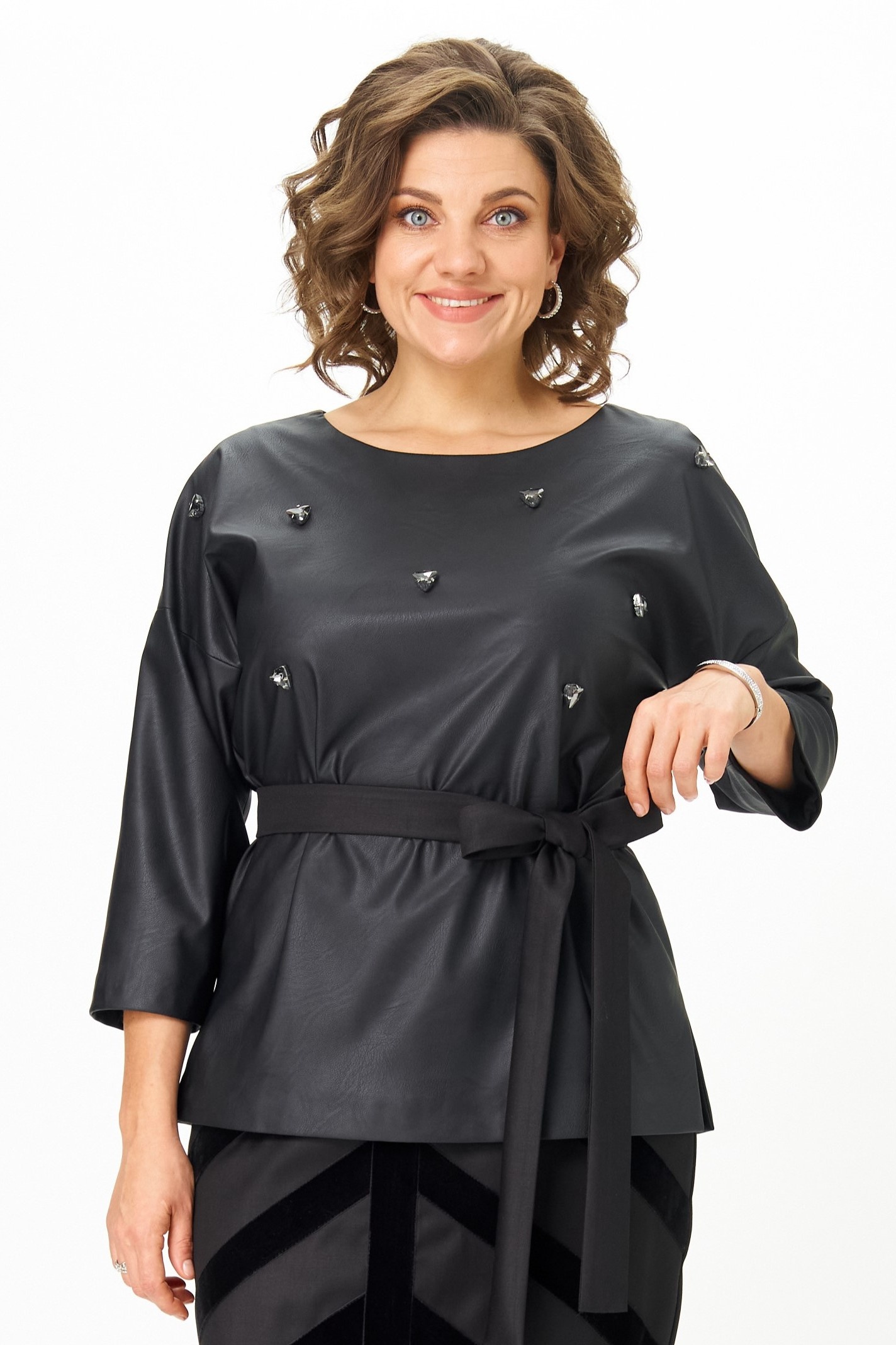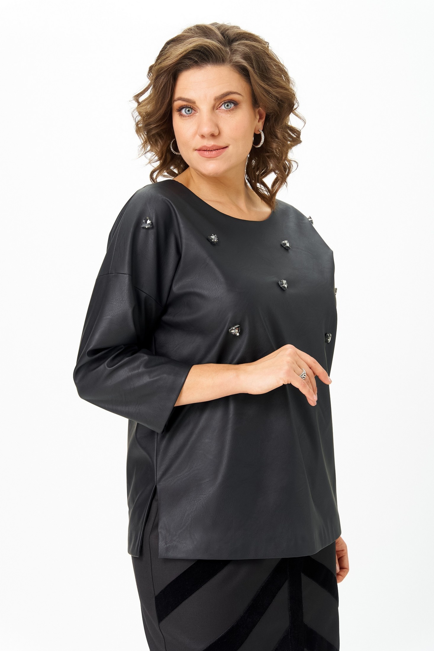 Стильная блузка из экокожи способна сделать ваш гардероб еще более модным и разнообразным. Отлично подойдет как на каждый день, так и для праздника, ведь ее легко сочетать. Модель с рукавом ¾, свободный прямой крой подойдет для любой фигуры, подчеркнёт достоинства и скроет недостатки. Все швы закрыты подкладкой, а перед украшен декоративными камнями, что придает изделию дорогой вид