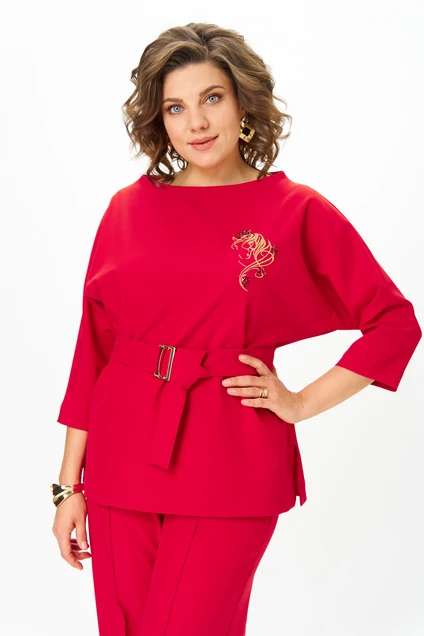 Блузка прямого кроя со съёмным поясом, это стильно и удобно. Яркая и женственная, она станет акцентом вашего гардероба. Свободный крой и рукава длины 3/4 создают утонченный силуэт, который подчеркнет вашу фигуру. Дизайн блузки сочетает в себе классическую элегантность и модные тренды. Нежная дизайнерская вышивка добавляет образу легкости и изящества.