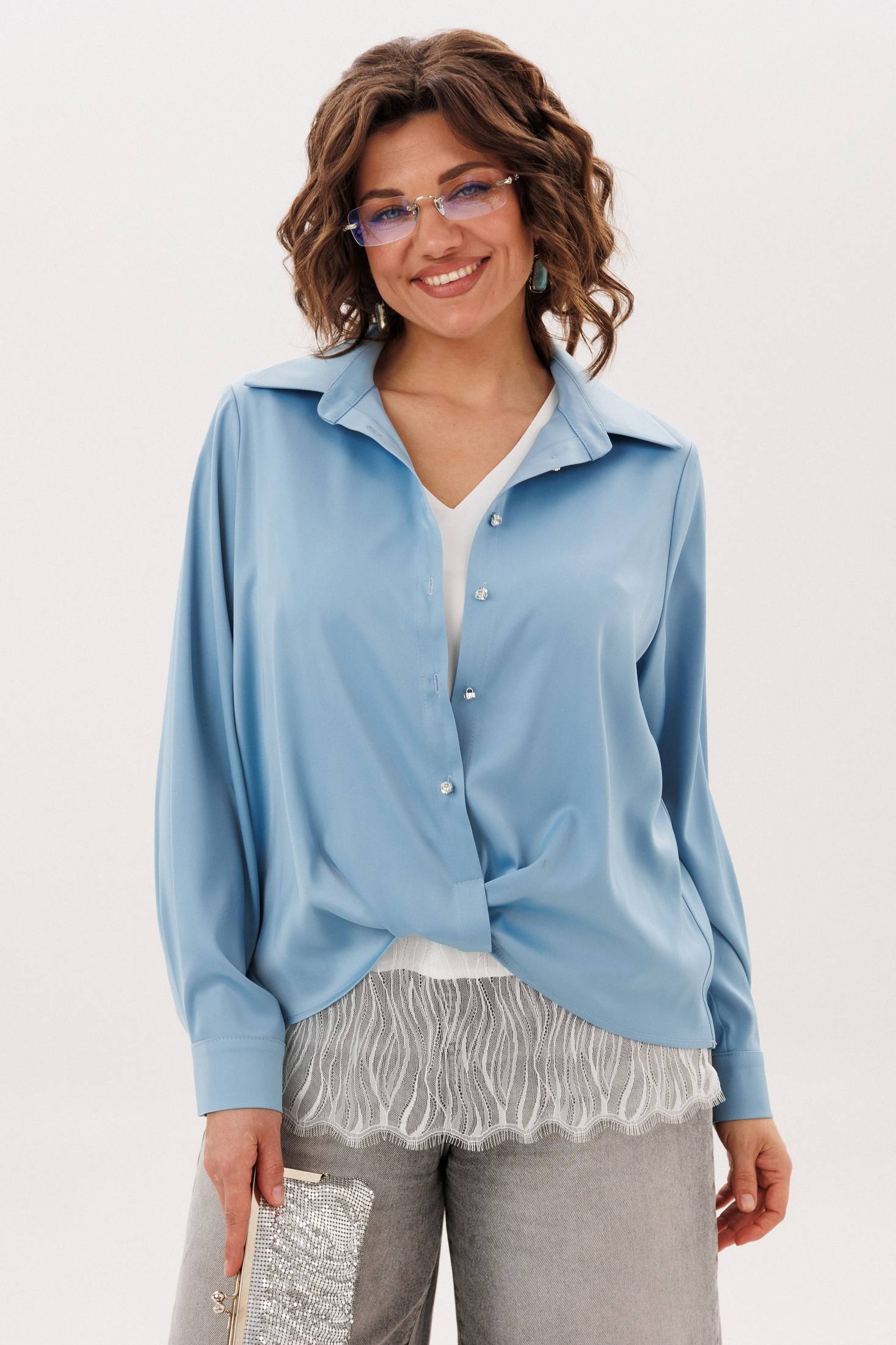 Блузка 1663 голубая лагуна Anelli