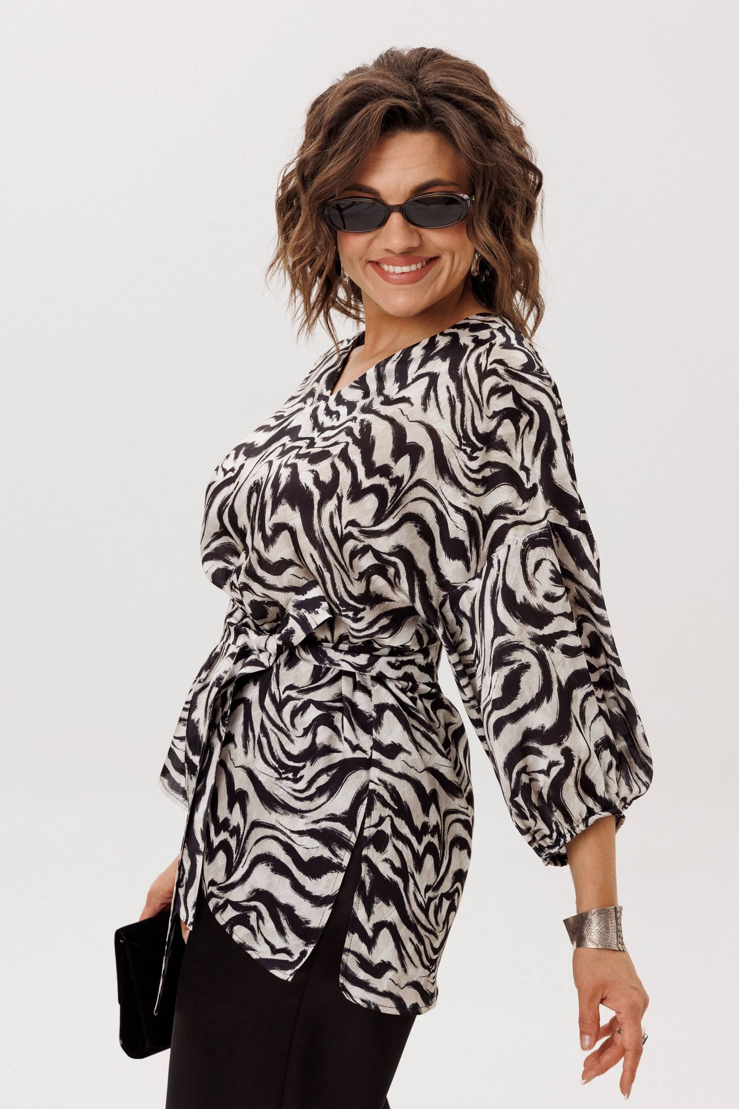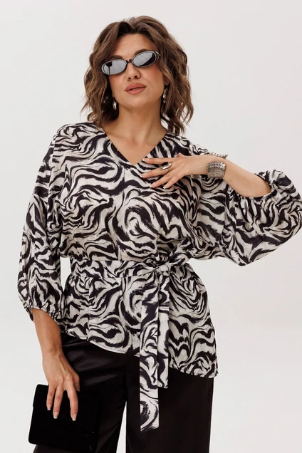 Главная особенность этой модели — продуманная многозадачность. Пояс в комплекте позволяет вам самостоятельно создавать нужный образ: затяните его, чтобы подчеркнуть талию и создать фигуру «песочные часы», или отпустите для расслабленного силуэта в стиле бохо. Завершает картину асимметричный низ с разрезом — деталь, которая делает блузу по-настоящему уникальной и визуально вытягивает силуэт.