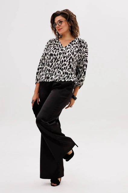 Но главная тайна этой модели скрыта в ее сердце — эластичная резинка, проходящая по всему низу блузы. Эта деталь полностью меняет правила игры. Теперь вы сами становитесь творцом своего образа: укоротите блузу для дерзкого современного вида или отпустите ее для струящегося, романтичного силуэта. Она послушно следует за вашим желанием, подстраиваясь под настроение и ситуацию.