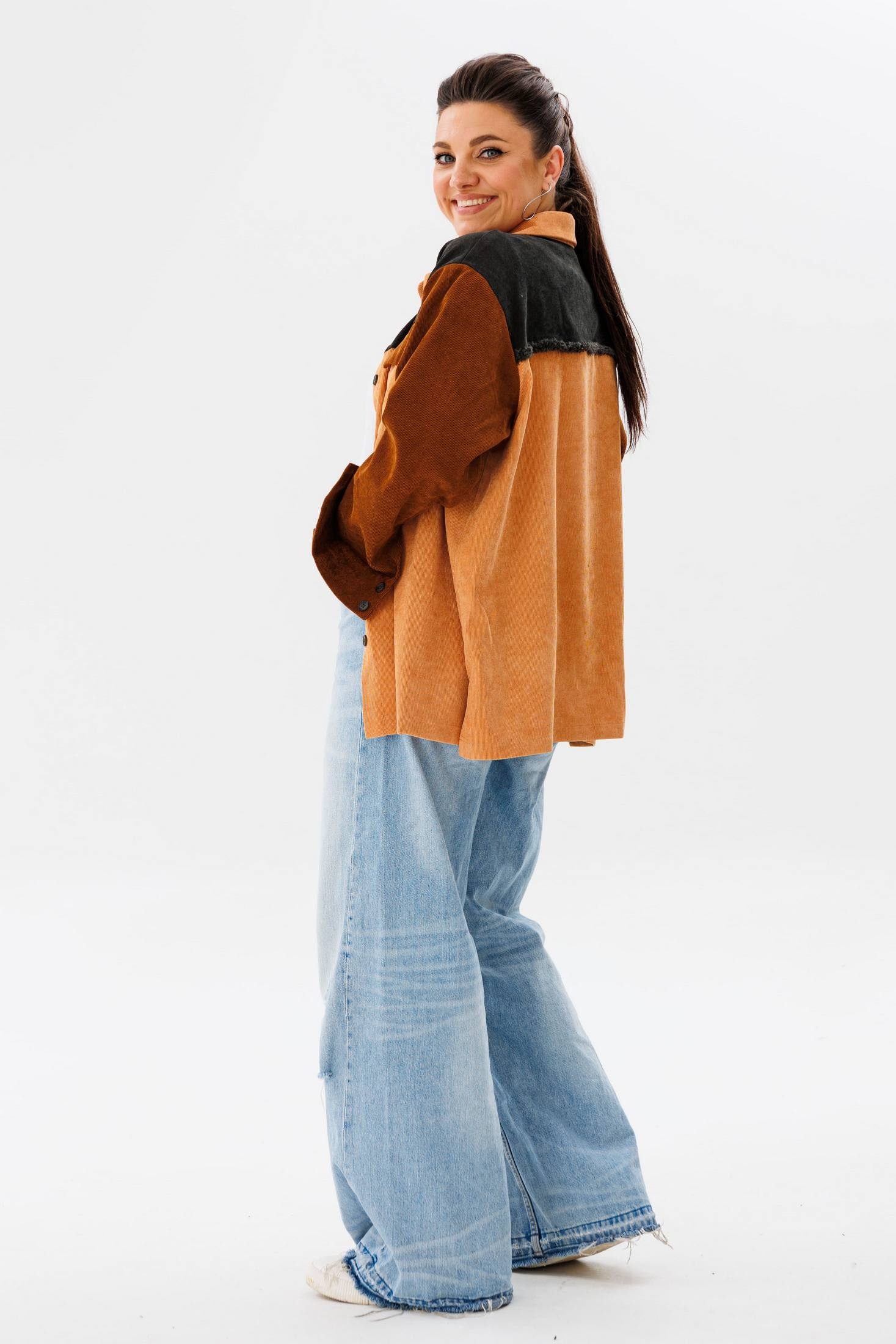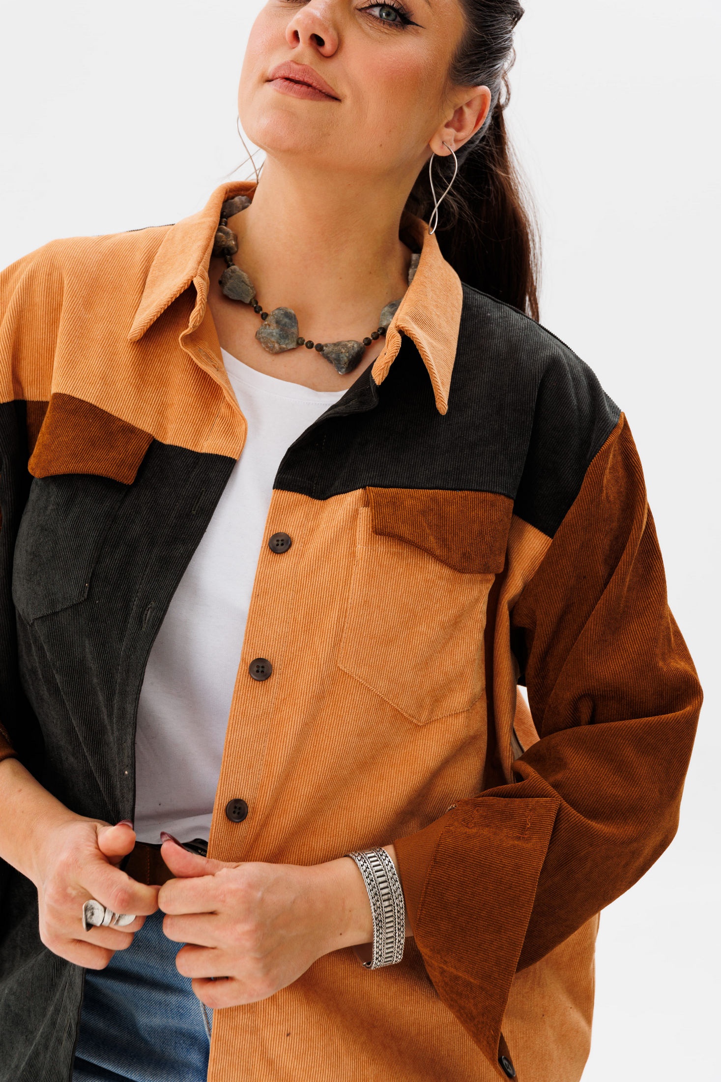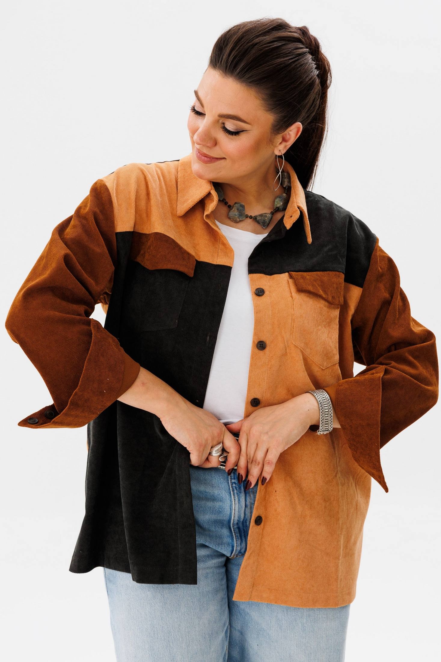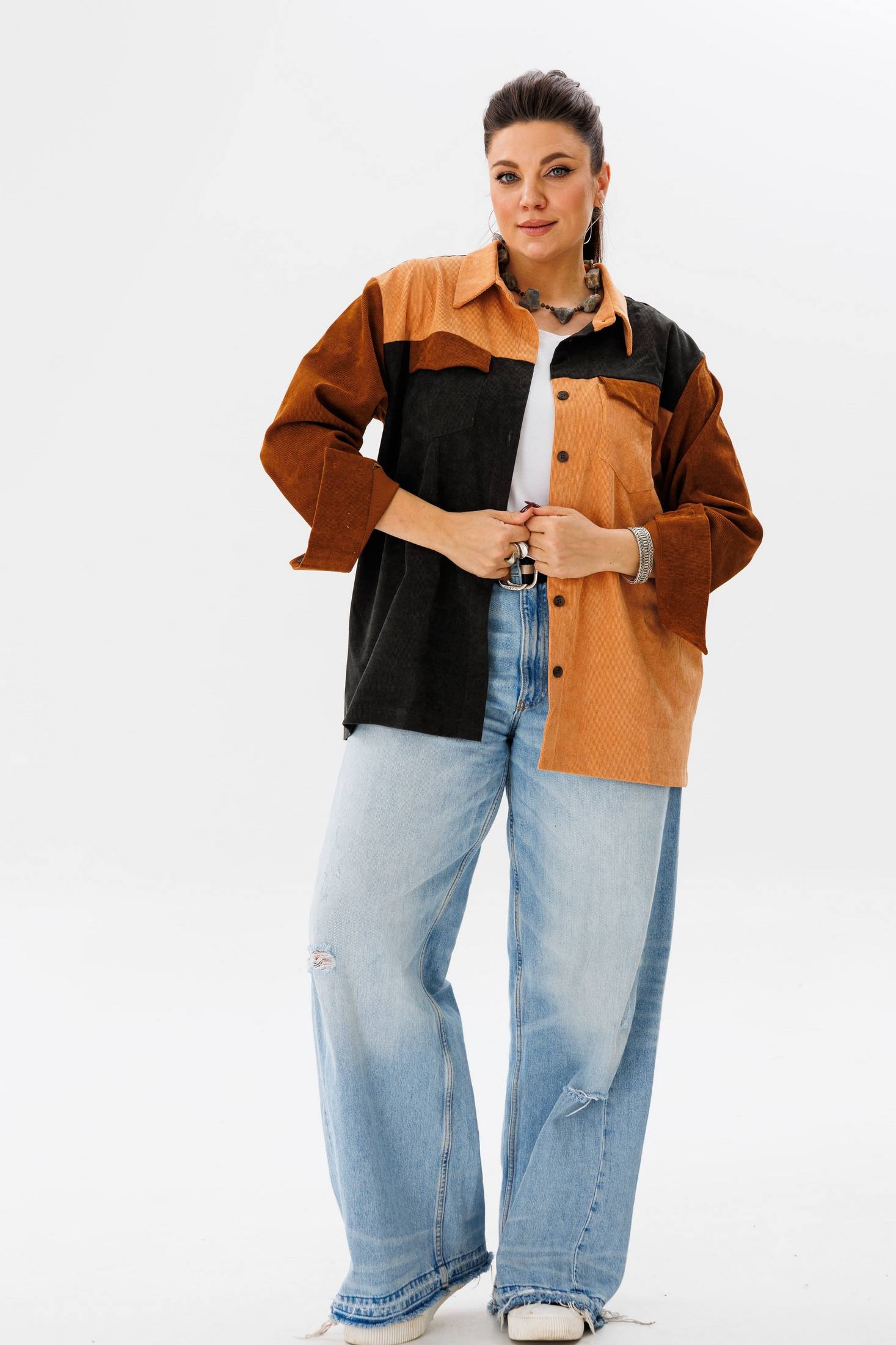 Элементы рубашки сочетаются тремя цветами – это смелое решение, которое даёт возможность собирать образы с любыми вашими вещами!