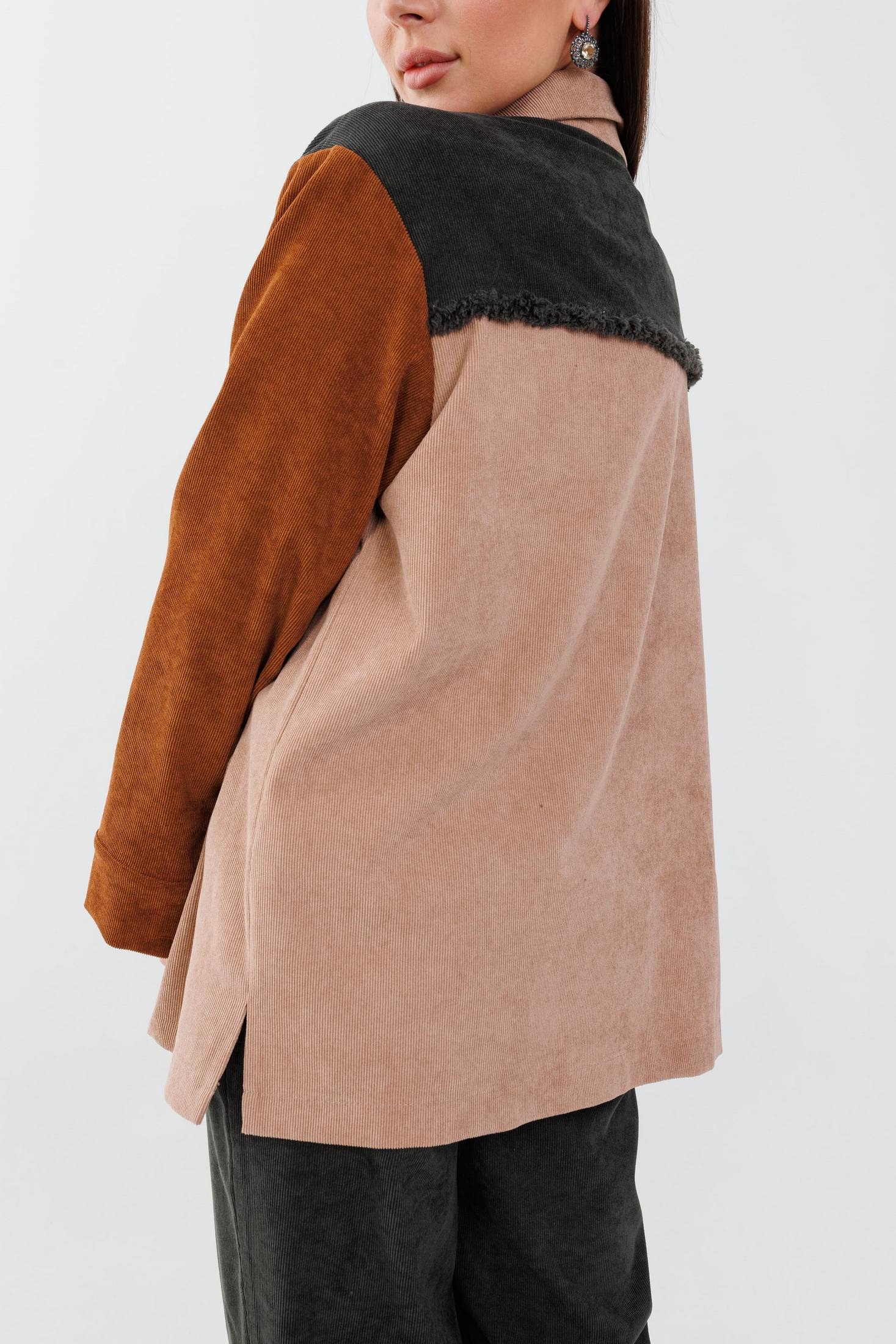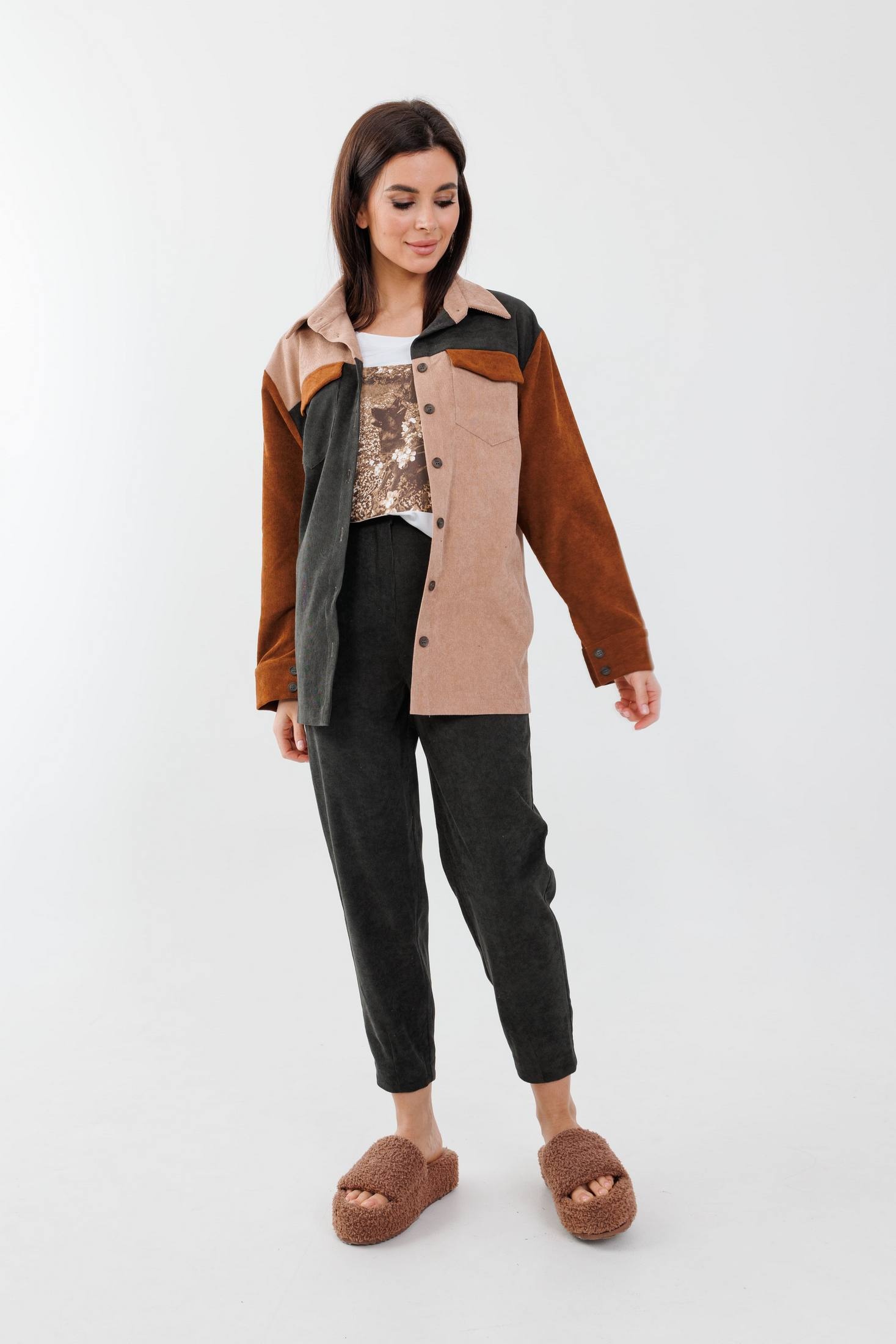 Элементы рубашки сочетаются тремя цветами – это смелое решение, которое даёт возможность собирать образы с любыми вашими вещами!