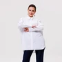 Блуза из плотного атласа цвета айвори, являющаяся незаменимым элементом базового гардероба, отлично подойдет к различным вариантам низа. Модель умеренного объема, прямого силуэта, с классическим рубашечным воротником и втачными длинными рукавами. Рукава дополнены разрезами и обработаны планкой для аккуратного вида. Спереди блуза украшена пуговицами в тон материала. Низ изделия фигурный, с элегантными разрезами по боковым швам, придающими дополнительную изящность. Длина изделия по спинке составляет 70 см, длина рукавов включая плечо и манжет 78 см. Эта блуза идеально сочетается как с классическими брюками, так и с более неформальными элементами одежды, подчеркивая стиль и женственность образа.