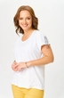 Майка женская прямого силуэта из вискозы для повседневной носки , горловина обработана бейкой , рукава короткие втачные , на левом рукаве декоративная тесьма .