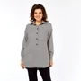 Рубашка свободного кроя, в стиле оверсайз. Силуэт свободный. На переде слевой стороны карман. По боковым швам разрезы. Рукав рубашечный с разрезом и складками,заканчивается манжетой, которая застегивается на 3 петли и пуговицы.Плечо спущенное. Боковой сделан на 3см на запах,поэтому разрез не расходится.Длина по спинке-79см, длина рукава+манжета-63см, длина плеча-17 длина разреза-26см. Параметры модели: обхват груди-98см, обхват бедер-110см, размер изделия на модели 50.
