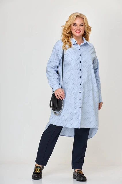 Рубашка свободного кроя, в стиле оверсайз, удлиненная. Рукав рубашечный с разрезом и складками,заканчивается манжетой, которая застегивается на 2 петли и пуговицы.Плечо спущенное. Низ переда ровный, а спинка длиннее и закруглена. Длина по спинке-113см, длина по переду-98см, длина рукава+манжета-55см, длина плеча-21,5см. Ткань хорошо тянется по ширине.