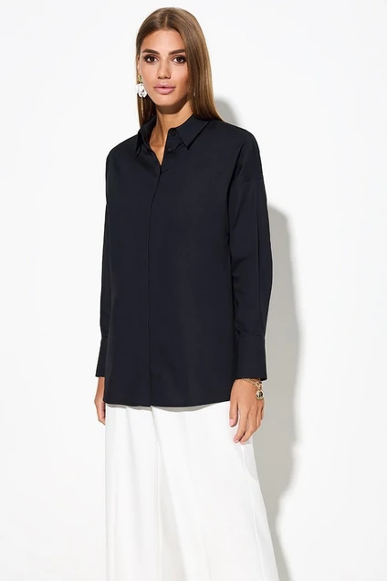 - свободного силуэта с центральной планкой и потайной застёжкой на петли и пуговицы;