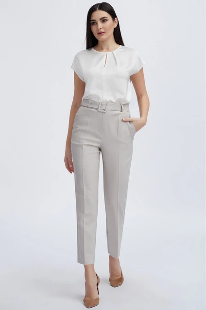 Стильная блузка со спущенными цельнокроеными рукавами, выполнена из тонкого струящегося креп-сатина. С округлой формой горловины, перед с щелевидным вырезом в среднем шве и двумя мягкими складками, в среднем шве спинки обработана застежка на навесную петлю-пуговицу. Модель безупречно рифмуется с лаконичными изделиями из нашей коллекции.