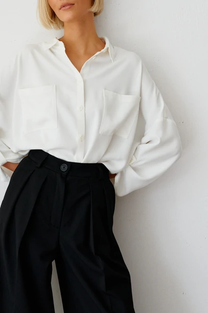 Рубашка прямого свободного кроя выполнена из легкой струящейся ткани. Белая рубашка базовая вещь в гардеробе. Поможет Вам создать образы в разных стилях.