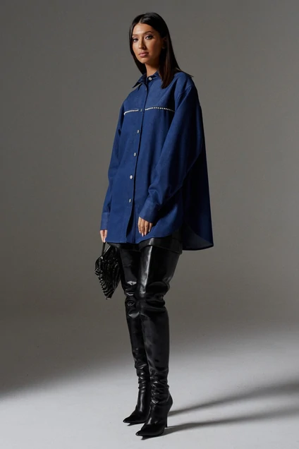 Рубашка прямого кроя выполнена из джинсового полотна с акцентными бусинами по переду. Джинсовая рубашка универсальная вещь в гардеробе , сочетается как с классическими брюками и юбками так и с джинсами и брюками в спортивном стиле, стильное украшение на рубашке позволит создать индивидуальный образ. Характеристики: прямой крой, отложной воротник, застежка центральная на петли пуговицы, рукав свободного кроя втачной, по низу рукава манжета на пуговичке, низ изделия - плавный срез, спинка отрезная, по переду ровная линия белых бусин. Длина изделия 77, длина рукава 80 от края горловины.