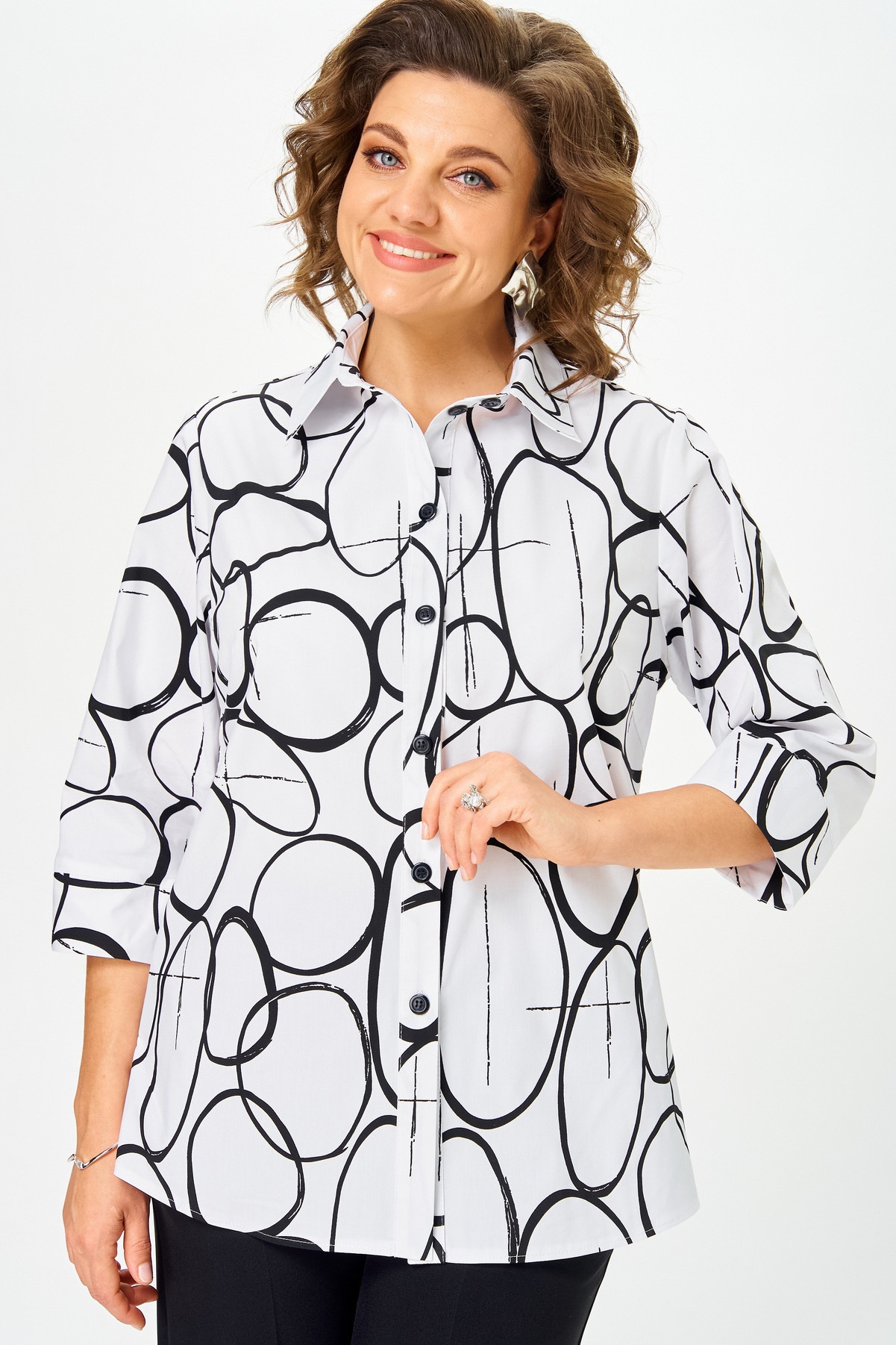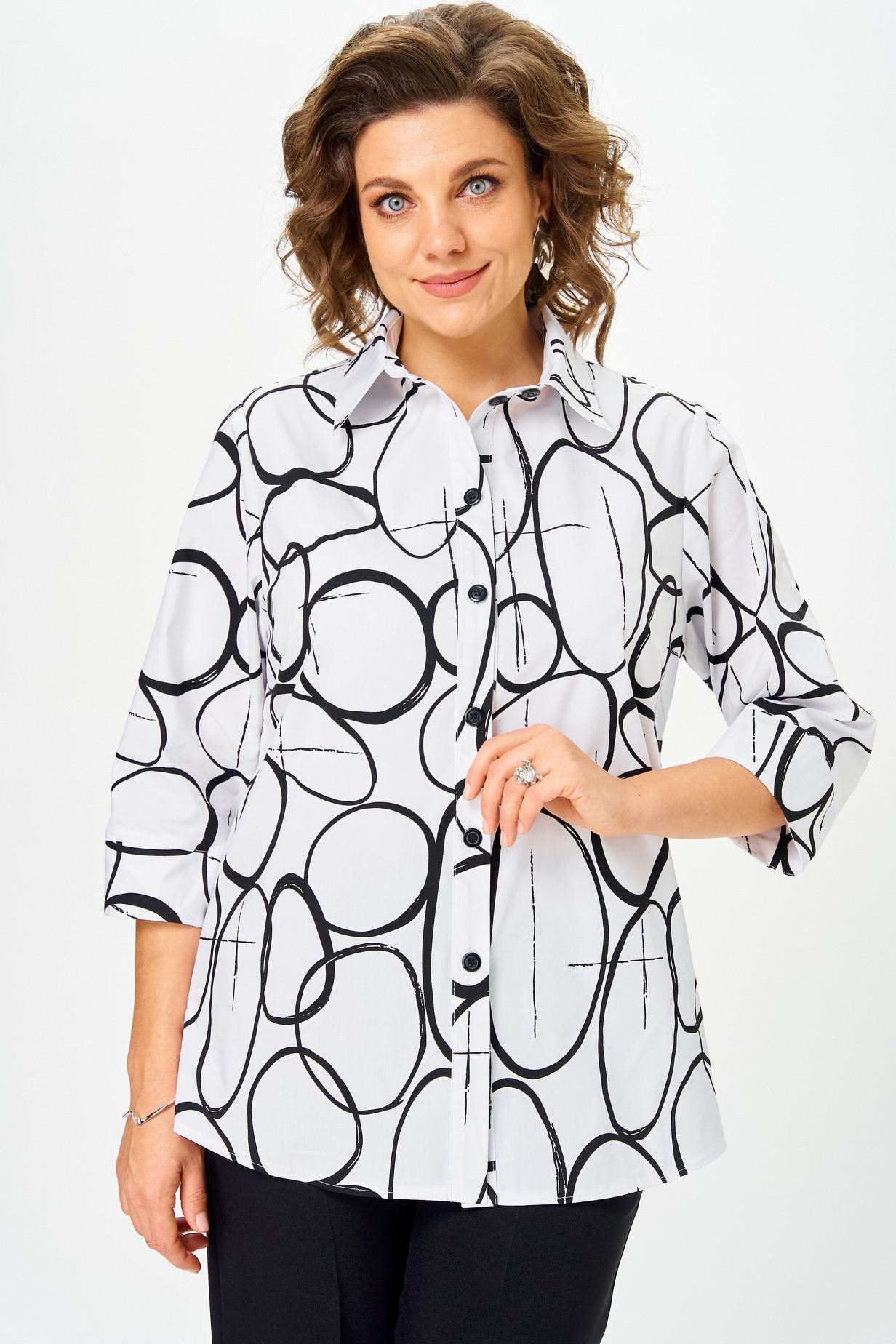Идеальная блуза для создания стильного базового гардероба.Прямой крой скроет недостатки фигуры и подарит комфорт в течение всего дня. Романтичные рукава 3/4 с манжетами подчеркнут изящество запястий, а элегантный отложной воротник завершит образ. Удобная застежка на пуговицы и боковые разрезы делают блузу невероятно удобной. Длина по спинке 74 см, длина рукава 45.