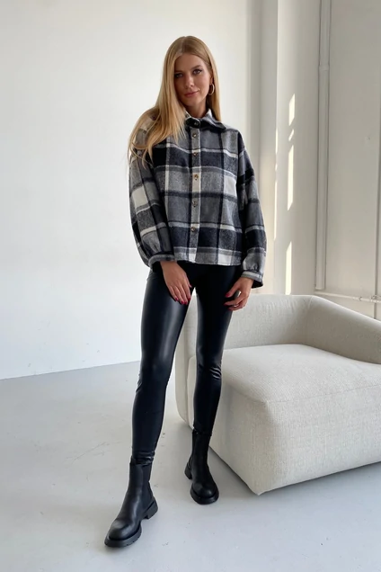 Клетчатая рубашка с начесом. Стильная теплая вещь для холодного сезона. По переду расположена застежка на пуговицы. Рукав с манжетой на сборке.