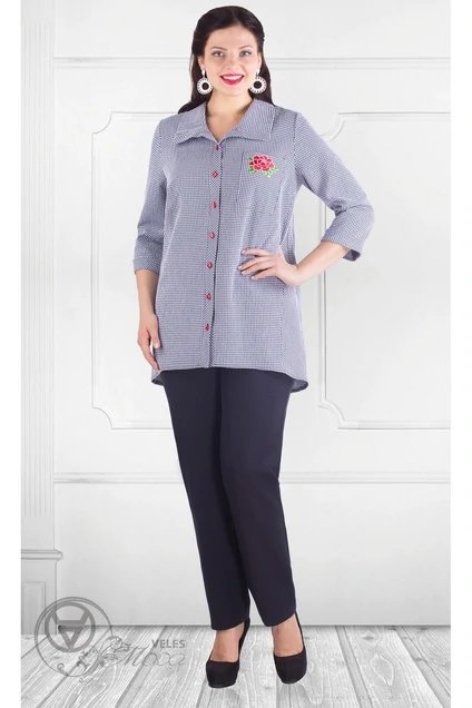 Красивая женская блузка выполнена из качественного хлопка. Прямой крой позволяет не сковывать Ваши движения. Изюминкой данной модели является вышивка на груди. Можно использовать как жакет, накинув на топ, для создания рабочего или повседневного образа.
