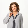 Блузка с короткими рукавами, имеет прямой свободный крой, что придает ей непринужденный и комфортный вид. Есть декоративные пуговицы, расположенные вертикально вдоль боковых швов и на спине. Вырез горловины круглый, что добавляет блузке классический вид. Ткань легкая и приятная, хорошо подойдет для теплой погоды.