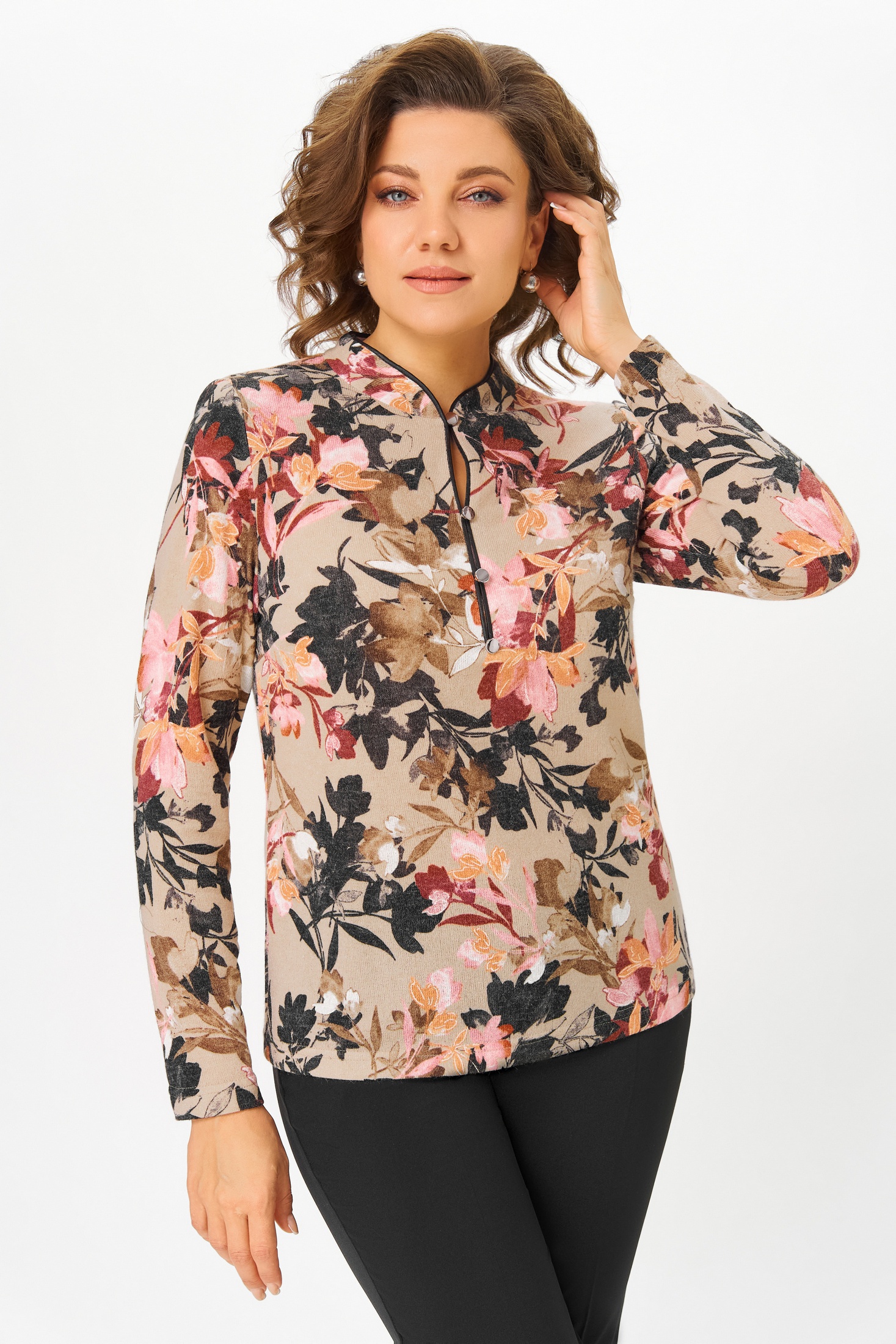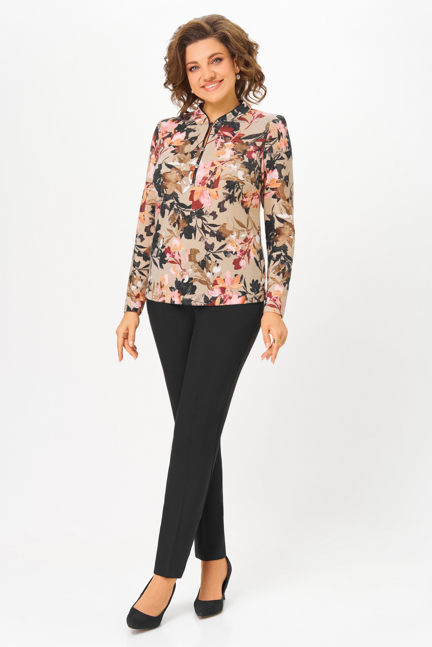 Элегантная блузка в романтичном стиле — идеальный выбор для стильного гардероба. Изделие выполнено из приятного на ощупь материала с принтом в виде цветочного узора, где доминируют оттенки розового, черного и бежевого. Блузка с длинными рукавами (62 см) и общей длиной изделия 64 см. Отделка в виде струящегося шнурка на воротнике добавляет изящества, подчеркивая женственный силуэт. Легко сочетается как с деловыми, так и с повседневными ансамблями. Это прекрасный выбор для тех, кто ценит комфорт и красоту в одежде.
