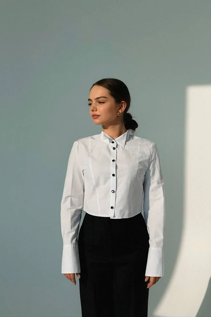 Женская хлопковая рубашка от бренда DJACCO - это универсальный и стильный предмет одежды, который имеет множество преимуществ. Она обеспечивает комфорт и удобство в течение всего дня, а также позволяет создавать разнообразные образы.Дизайн рубашки чуть короче талии в стиле owner says. Воротничок как под галстук бабочка. Манжеты высокие проработан дублерином так же как и воротник.