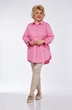 Блуза женская А силуэта. Перед с нагрудными выточками. По центру переда планка на 5 прорезных петель и пуговиц. Планка до талии. Внизу планки заложена односторонняя складка. Спинка на кокетке. Нижняя часть спинки с легкой сборкой. Воротник на стойке отложной. Рукав втачной 7/8. Низ рукава присобран на хлястик. В боковых швах разрезы и действующие карманы.