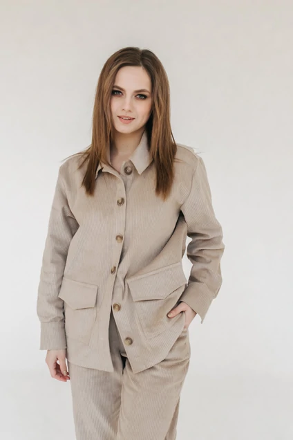 Рубашка вельветовая свободного кроя, рукав вточной. По передней части - 2 настрочных кармана на магнитах.