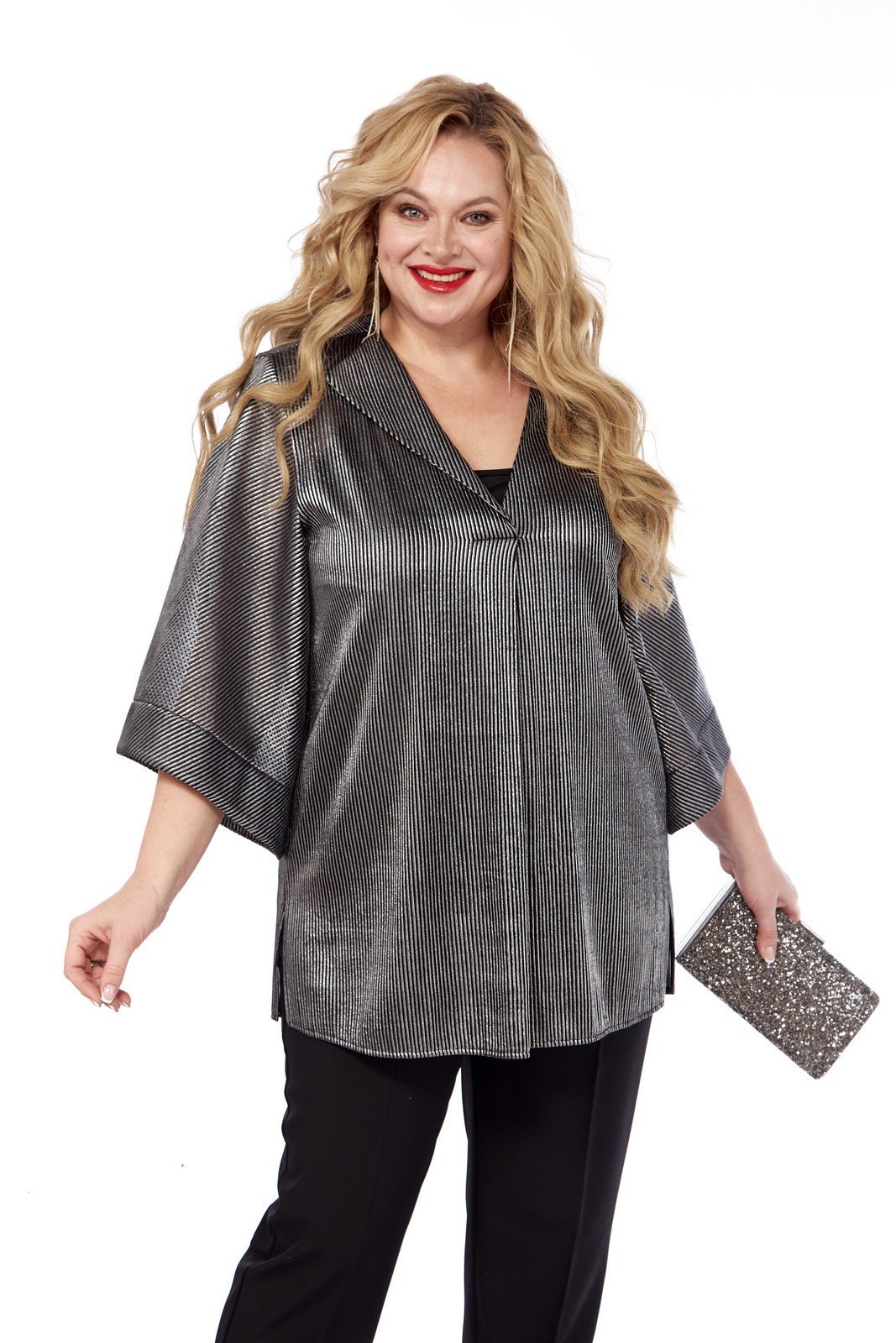 Блуза свободного силуэта, выполнена из легкой струящейся ткани. Эстетично подчеркнут V-образный вырез горловины, что служит декоративным элементом изделия, встречная складка создаст повышенный комфорт. Рукав втачной, свободный, расширяющийся книзу, создает современный стиль образу. Топ входит в комплект.