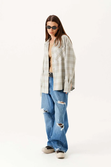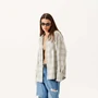 Эта стильная блузка в клетку идеально подойдет для создания современного повседневного образа. Отличительной чертой модели является классический рубашечный воротник и удобная центральная застежка на петли и пуговицы, что добавляет блузке утонченности. Симметричные накладные карманы на груди усиливают функциональный характер изделия, а длинные рукава с манжетами на пуговицах дополняют ее универсальный крой. Блузка выполнена из легкой ткани в нейтральных тонах бежевого и белого, что делает ее идеальным выбором для сочетания с различными элементами гардероба.