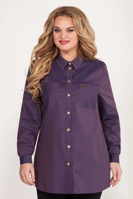 Рубашка женская, классическая, прямого силуэта, выполнена из хлопка. Застёжка центральная на пуговицы. Воротник рубашечного типа, отложной с отрезной стойкой. Рукав длинный ,одношовный. Низ рукава оформлен притачной манжетой на одну пуговицу. На полочке нагрудная выточка и два больших накладных кармана. Низ рубашки оформлен по прямой. Замеры 54-56-58р. Длина блузки -79см. Длина рукава- 61см, ширина рукава- 44см. 60-62-64 р. Длина блузки - 81см. Длина рукава - 61см, ширина рукава- 46см.