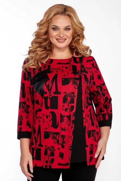 Блуза прямого силуэта из трикотажного полотна. Полочка вертикально разрезана и дополнена вставкой из ткани компаньона, от плечевого шва декорирована молнией. По левой стороне фигурный накладной карман с клапаном. Горловина круглая обтачная. Спинка со средним швом, переходящий вверху в застежку на 1 петлю навесную, 1 пуговицу. Рукав втачной, снизу обработан манжетой. Низ изделия фигурный.