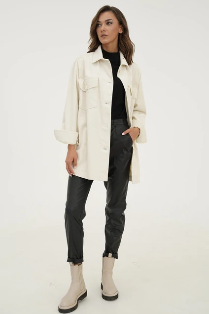Куртка, напоминающая кроем теплую удлиненную рубашку, стала модным триумфом прошлой осени и не собирается сдавать свои позиции весной. Она идееально вписывается в кэжуал-комплекты с джинсами, кожаными брюками. А в сочетании с мини платьем и челси - получается актульный дерзкий образ. Мягкий хлопковый штрукс, рубашечный покрой, центральная застежка, рубашечный воротник. Полочка с отрезной кокеткой, накладным карманом с клапаном, отрезным бочком и карманом в рельефе. Рукав с локтевым швом на притачной манжете. Длина рубашки около 80 см. Длина рукава около 78 см с плечом.
