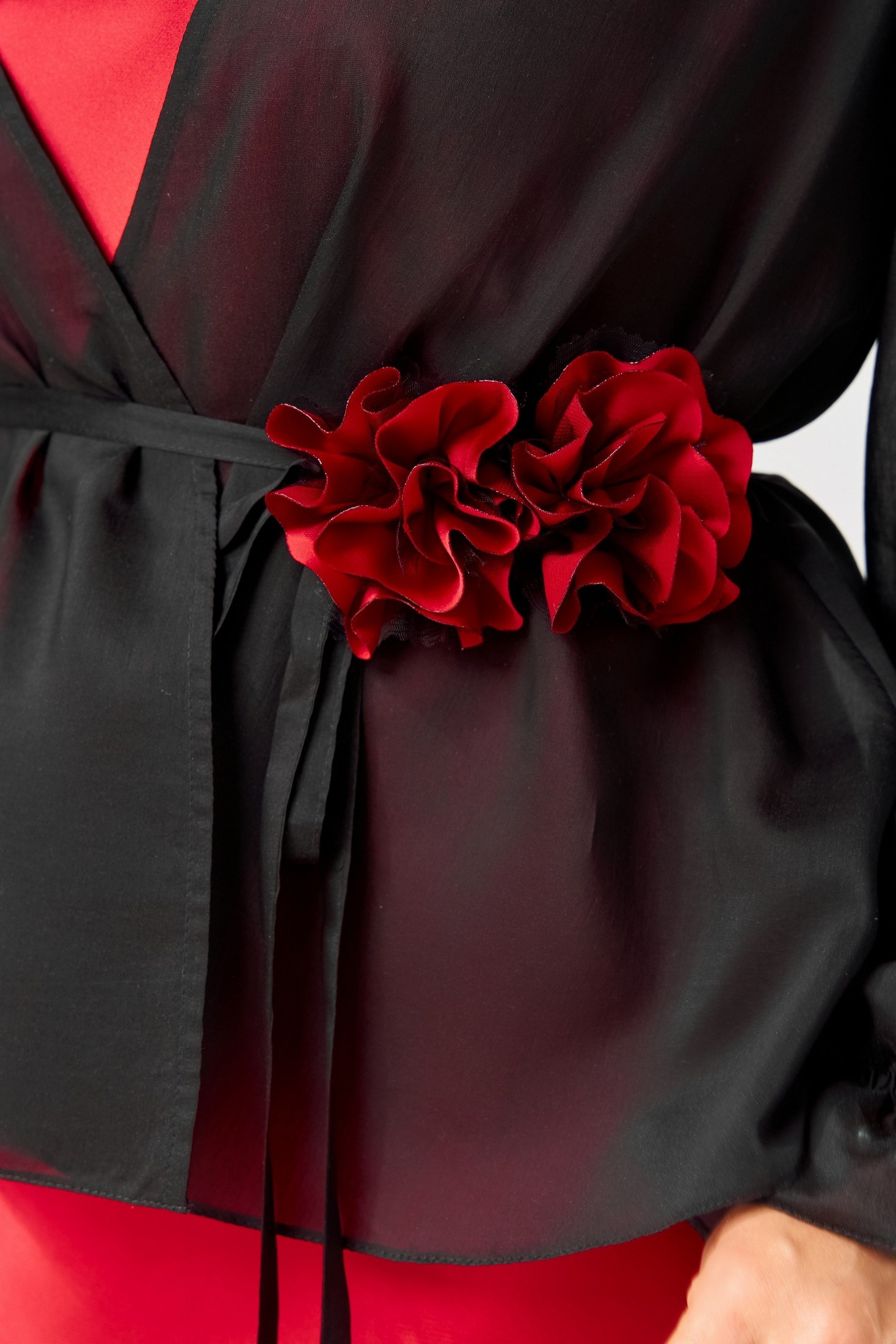 Нарядная накидка "Джелика" с поясом и двумя цветками ручной работы.