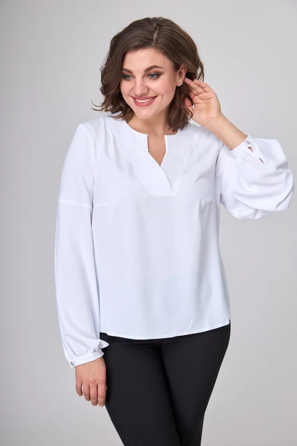 Блузка женская полуприлегающего силуэта, впереди V-образный вырез. Рукав длинный на манжете. Ширина манжета 2см.