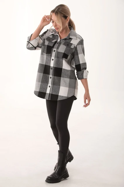 Блузка с застежкой на петли и пуговицы по планке переда, втачным воротником с отрезной стойкой. По переду накладные карманы с клапанами. Спинка с отрезной кокеткой, с бантовой складкой по шву притачивания кокетки.