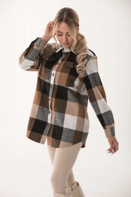Блузка с застежкой на петли и пуговицы по планке переда, втачным воротником с отрезной стойкой. По переду накладные карманы с клапанами. Спинка с отрезной кокеткой, с бантовой складкой по шву притачивания кокетки.