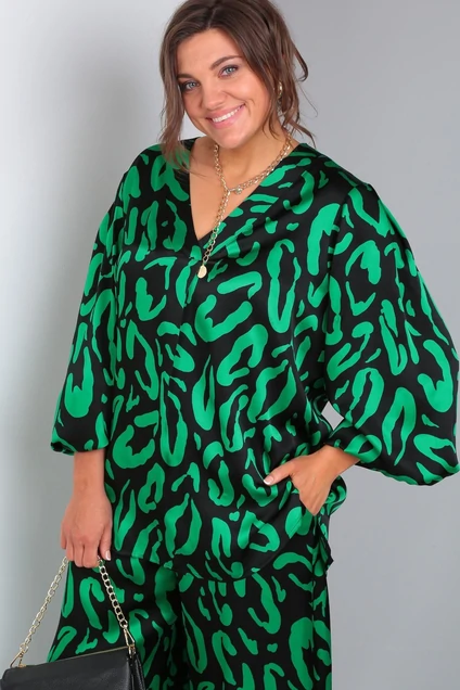 Новый тренд этого сезона - костюмы с принтом в пижамном стиле! Натуральная, дышащая, струящаяся ткань из вискозы, приятна на ощупь, очень комфортна в носке, особенно классно смотрится в комплекте с брюками из такой же ткани. Блуза женская, рубашечного покроя со спущенной линией плеча. Застежка центральная на пуговицы. V-образный вырез. Длинный рукав. Такая женская рубашка отлично подойдет для вечернего праздничного образа. Имеет свободный силуэт, благодаря чему прекрасно скроет недостатки фигуры. Модель подарит комфорт и удобство своей обладательнице . Женственная, очень удобная рубашка подойдет для повседневной носки, прогулок, посещения различных мероприятий! И не стоит бояться принтов, при правильном фасоне и подборе верха, они ни капли не утяжеляют образ.