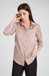 Блузка свободного силуэта, из искусственного шелка с атласным блеском. Отложной воротник-стойка. Центральная застежка на декоративные пуговицы.