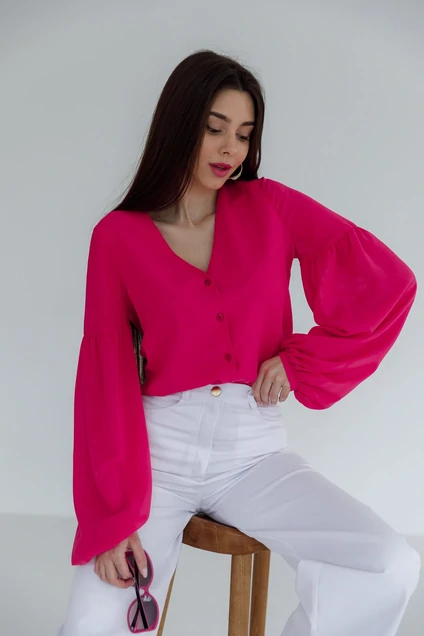 Нарядная модная женская блуза с рукавами-буфами - это идеальное решение для завершения праздничного образа. Очень яркая и нежная одновременно, придаст вашему образу изящества и загадку.