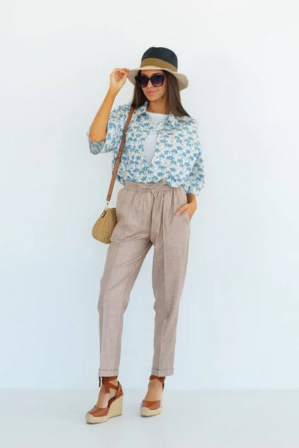 Рубашка женская летняя из легкой натуральной ткани, рукав короткий спущенный, спереди на груди накладной карман. Отличная база для жаркой погоды.