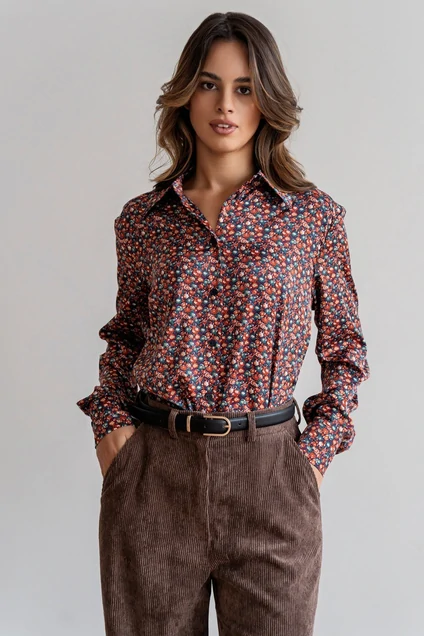 Блузка женская прямого свободного кроя, рукав длинный с манжетой на пуговицах, принт блузки запоминающийся с гцветочным уклоном. Этот стильный аксессуар отличается уникальным дизайном, который сочетает в себе актуальные цвета и разные формы цветков, создавая запоминающийся образ. Блузка изготовлена из высококачественных материалов, обеспечивающих комфорт и долговечность. Длинные рукава с манжетой на пуговицах добавляют элегантности и модности, а свободный крой позволяет легко сочетать блузку с различными видами нижнего белья и юбок. Это идеальный выбор для создания стильного и запоминающегося образа в любой ситуации.