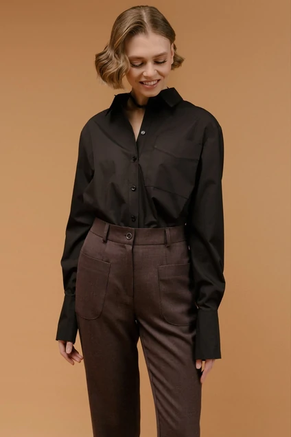 Молодежная блузка из блузочного полотна , со слегка спущенной линией плеча, с рукавом до запястья на удлиненной манжете с застежкой на пуговицу, с воротником на стойке. Перед с центральной застежкой на пуговицы, с накладным карманом с слева, спинка на кокетке и защипами на линии лопаток. Длина 73 см. ширина по линии груди 55,57,59см. (42,44,46,рр) ,ширина по линии бедер 63,65,67см Длина рукава с удлиненным манжетом 76 см .