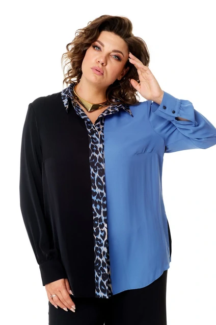 Блузка прямого силуэта, рукав втачной. Низ рукава обработан коассической манжетой с застёжкой на 2 пуговицы. Воротник классический рубашечный. Застёжка центральная потайная на петли и пуговицы.