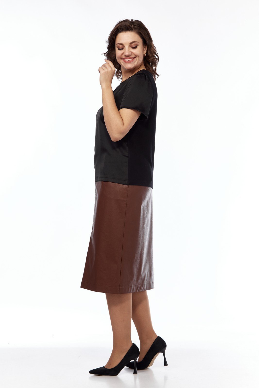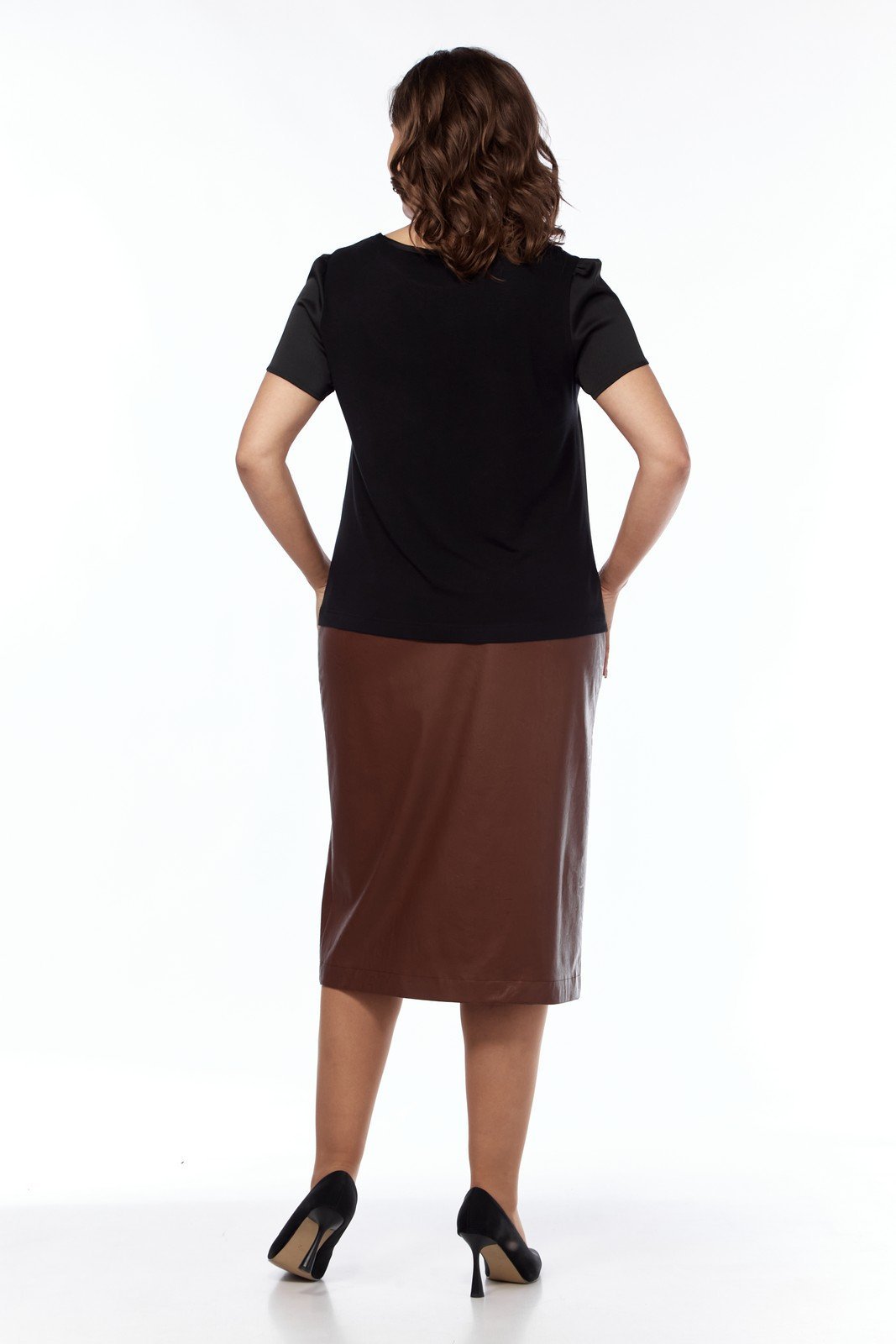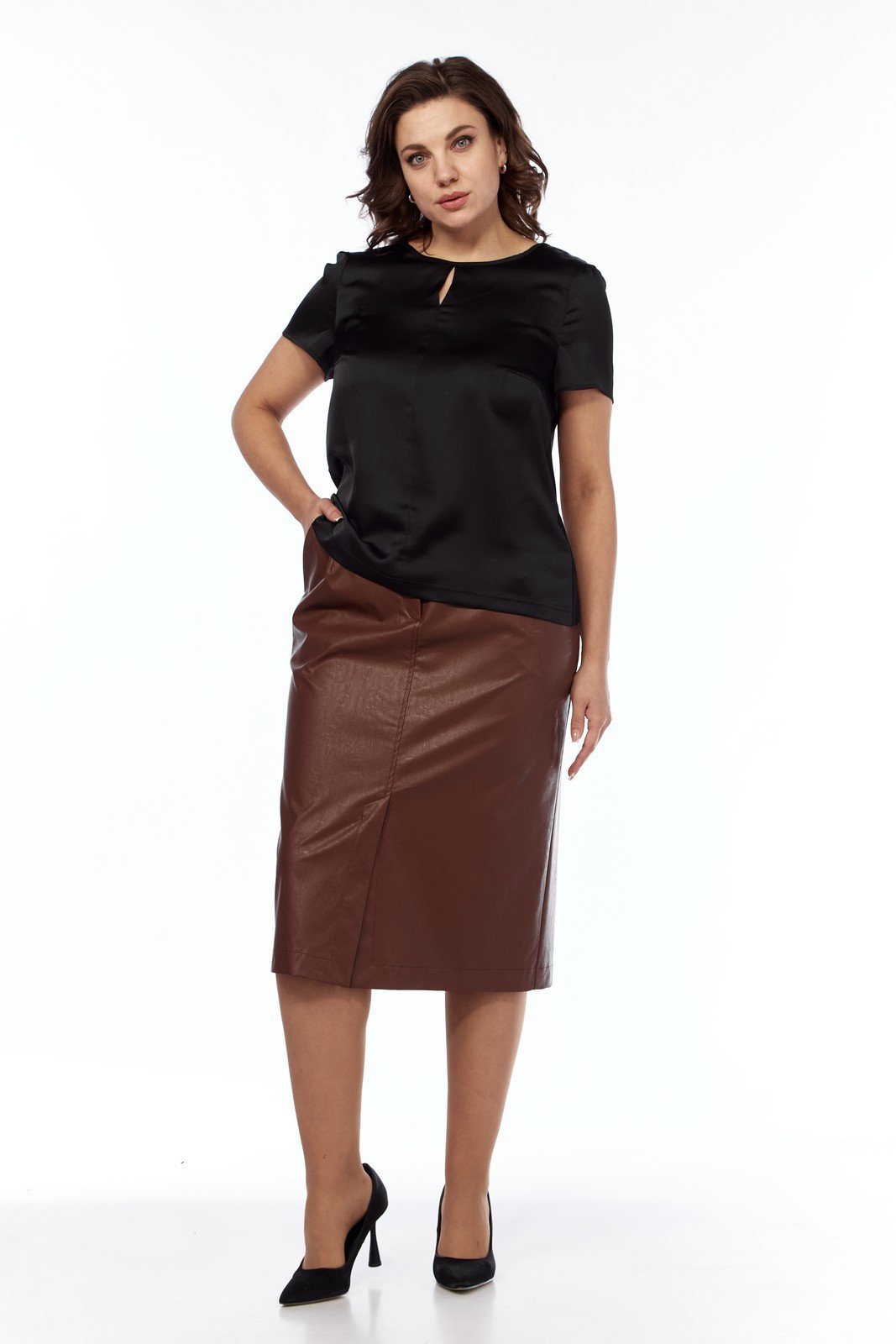 Элегантная женская блуза изготовлена в сочетании двух высококачественных тканей. Передняя часть и рукава выполнены из полиэстера с добавлением вискозы, что придает изделию мягкость и легкость, в то время как спинка сшита из чистой вискозы, обеспечивая комфорт в носке. Блуза черного цвета, полуприлегающего силуэта, подчеркивает фигуру, оставляя достаточно свободы. Дизайн блузы включает небольшой разрез впереди по центральному шву и нагрудные вытачки, что добавляет изделию структурированности. Округлая горловина аккуратно окантована. Рукава короткие, с легкой сборкой по окату, добавляющей нежный объём. Рекомендации по уходу включают машинную стирку в деликатном режиме при температуре не выше 30 градусов, что помогает сохранить первоначальный вид изделия. Эта блуза идеально подойдет как для офиса, так и для вечернего выхода, универсально сочетаясь с различными элементами гардероба.