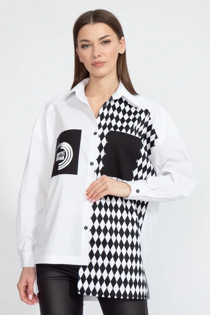 Рубашка хлопковая свободного силуэта, свободного кроя со спущенными рукавами и накладным карманом. Рост 164-170