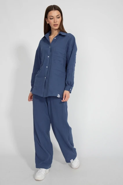 Рубашка свободного кроя из нежной натуральной хлопковой ткани - муслин со спущенными рукавами и накладным карманом. Ткань муслин. Отлично сочетается с брюками модели 3127 и шортами модели 3129. Рост 170