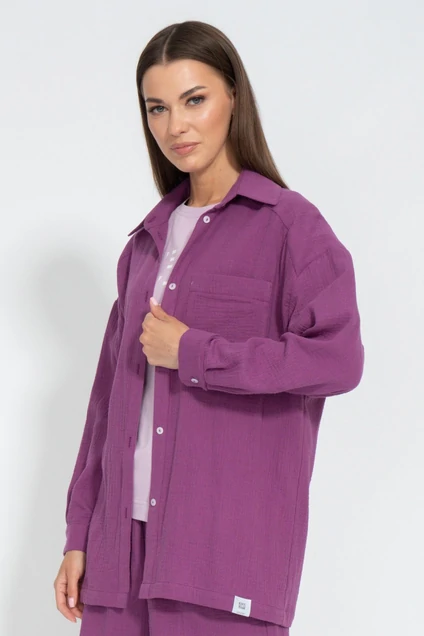 Рубашка свободного кроя из нежной натуральной хлопковой ткани - муслин со спущенными рукавами и накладным карманом. Ткань муслин. Отлично сочетается с брюками модели 3127 и шортами модели 3129. Рост 170