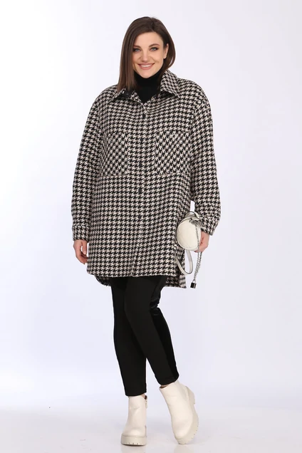 Тёплая, стильная рубашка из мягкой плотной ткани «гусиная лапка», свободного силуэта в стиле Оверсайз. Рукав втачной на манжете. Воротник на стойке, по полочке накладные карманы. Застёжка на кнопки.