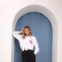 Эта стильная белая блузка привлекает внимание своим уникальным дизайном. Модель выполнена из легкого текстиля, идеально подходящего для повседневной носки. На передней стороне блузки красуются аппликации в виде красных вишен, что добавляет яркости и игривости образу. Задняя часть украшена крупным принтом с изображением вишен и надписью «CHERRY», выполненным в черном цвете. Простой крой с длинными рукавами и классическим воротником делает эту блузку универсальной вариацией на тему повседневной элегантности.