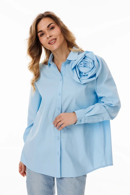 Блуза дополнена съемной брошью в виде цветка текстильного из основной ткани.
