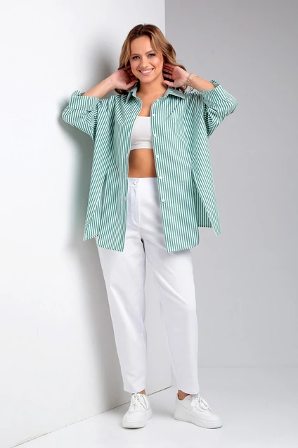 Рубашка 897 зелёная полоска Liona