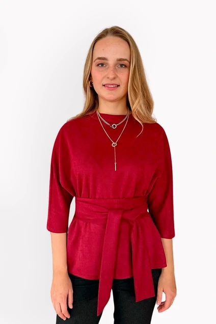 Блуза с поясом из вельвета - это символ элегантности и стиля. Ее сдержанный дизайн и пояс создают изящный силуэт, придают утонченность вашему образу. Эта блуза идеально подходит как для деловых встреч, так и для особых моментов, выражая вашу уверенность и характер. Цвет придает ей классическую универсальность, позволяя сочетать ее с различными нижними деталями вашего гардероба. Эта блуза станет надежным спутником вашего стиля.